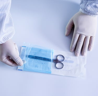 Flexible Peelable Combination Pouches: The typical structure of a combination pouch consists of a film on one side and a film, paper, or nonwoven material on the other. These pouches are commonly supplied as Preformed Sterile Barrier Systems. All seals are pre-formed except for one opening (typically at the bottom), which remains open to allow instrument insertion before final sealing. Since combination pouches can be manufactured in various widths, they serve as the Sterile Barrier System for a wide range of instruments, particularly those characterized by small size and light weight.